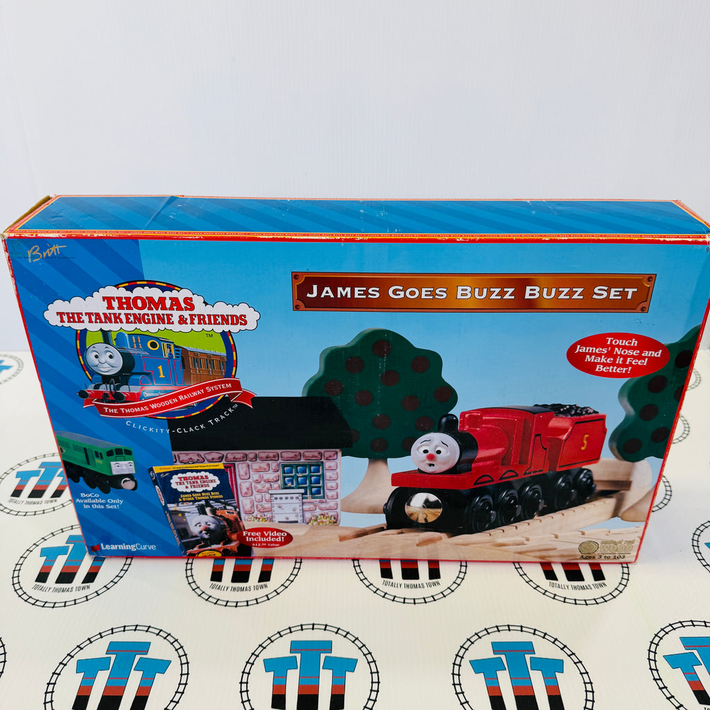 Thomas brand James Goes Buzz Buzz Set with VHS included. Ultra rare and hard to find!
