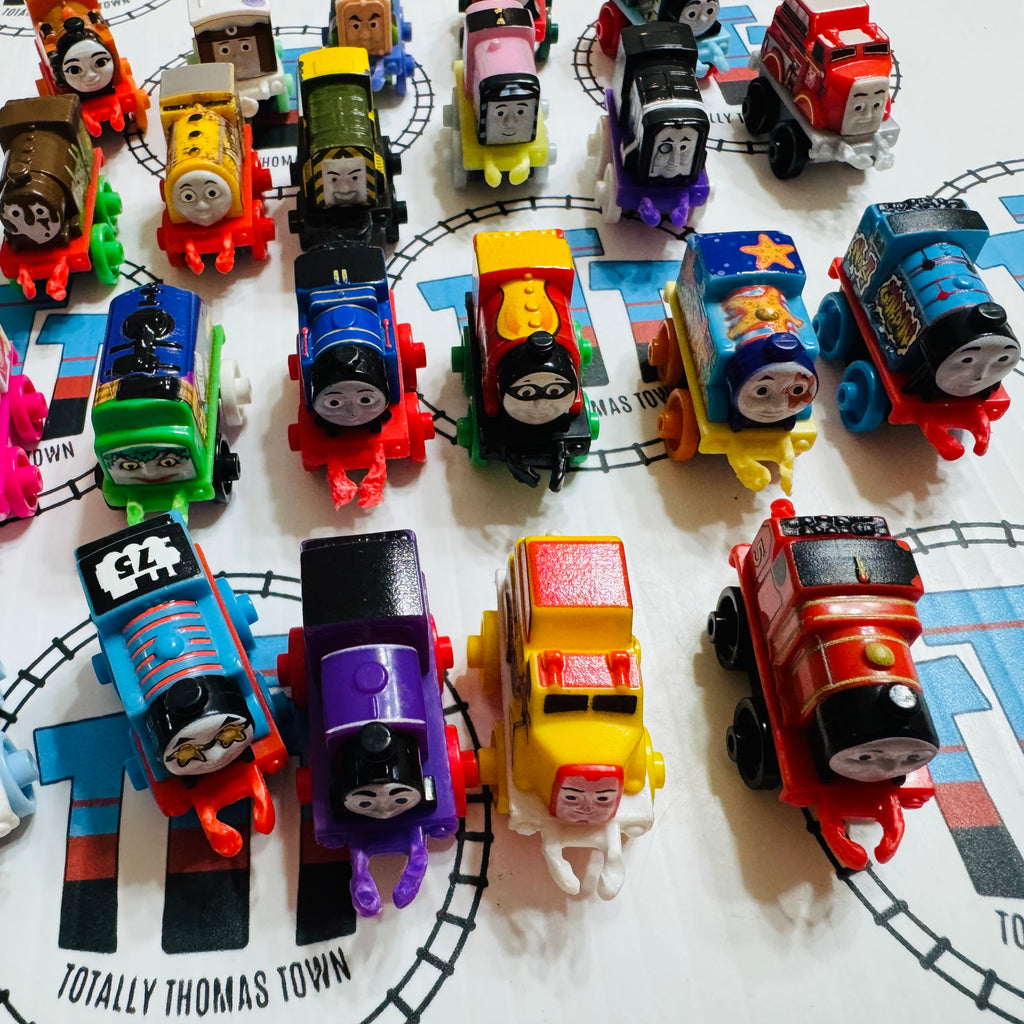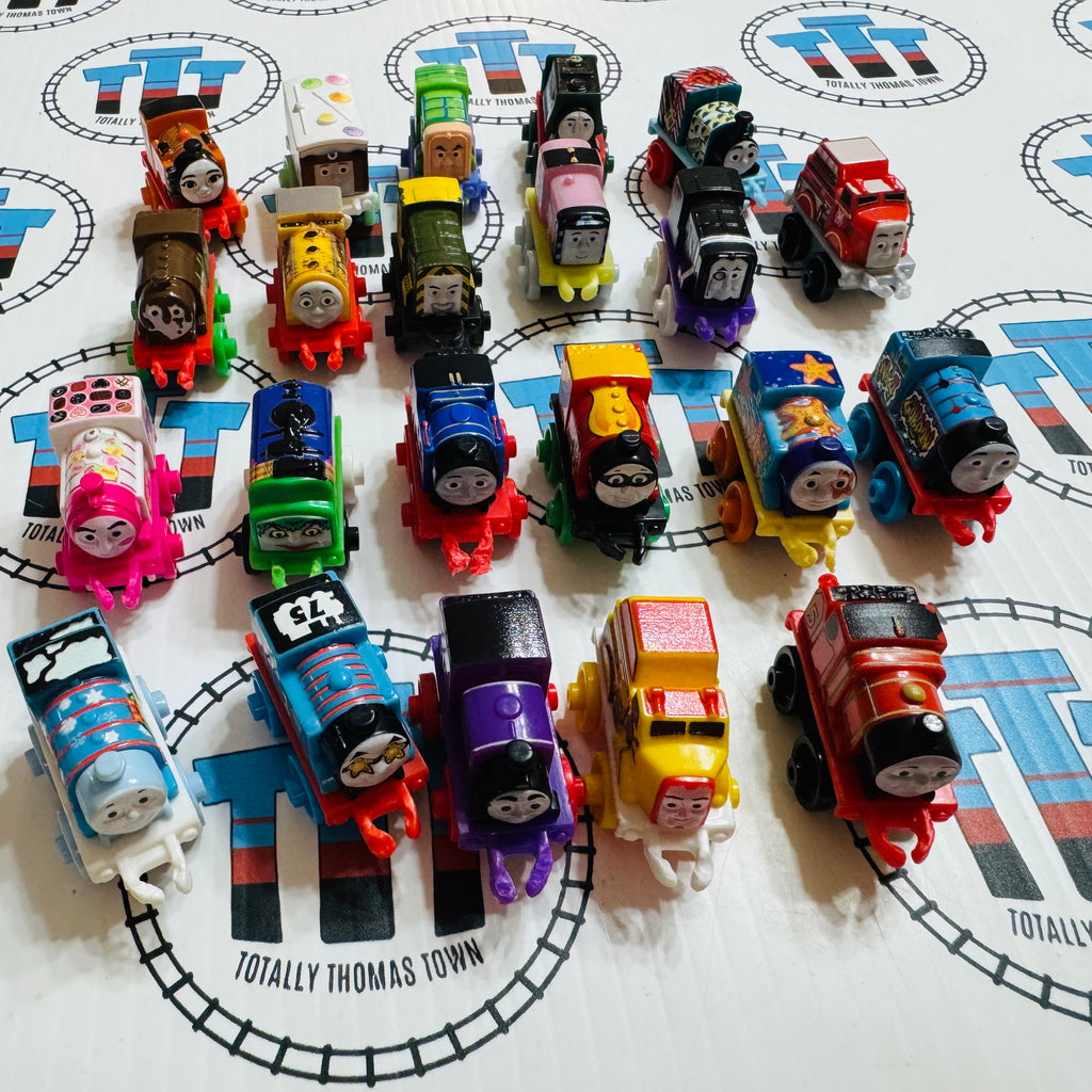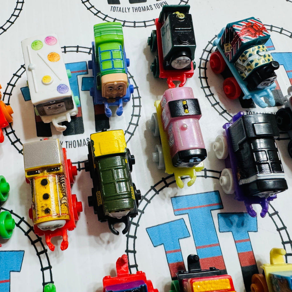 Used Minis as shown Damaged Couplings/Hooks.  Please note minis are individual trains and are not compatible with wooden or Trackmaster track