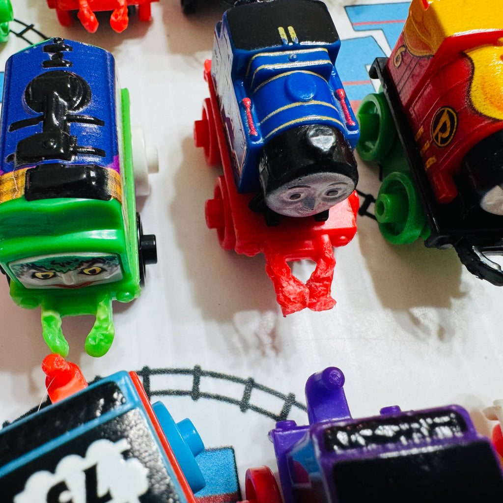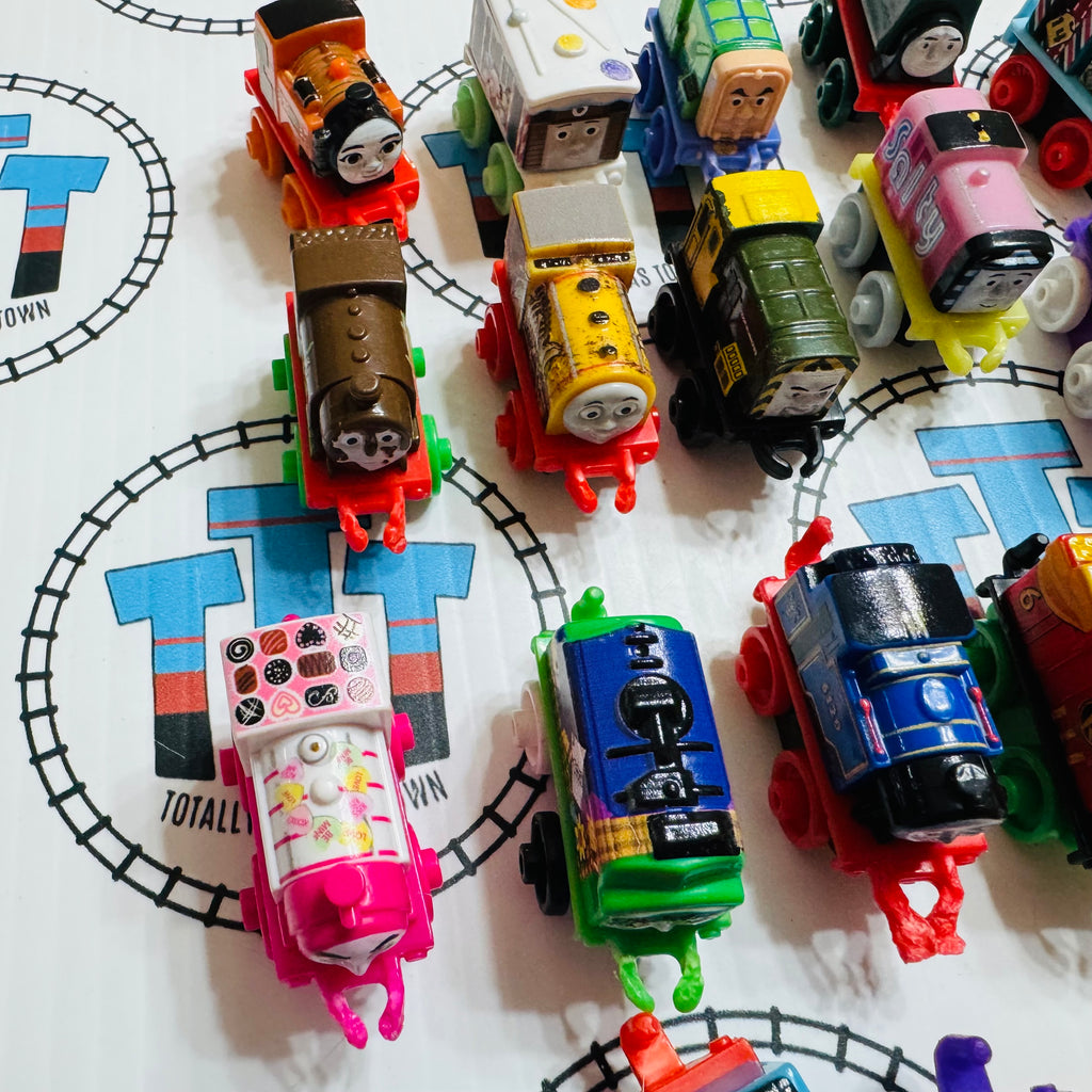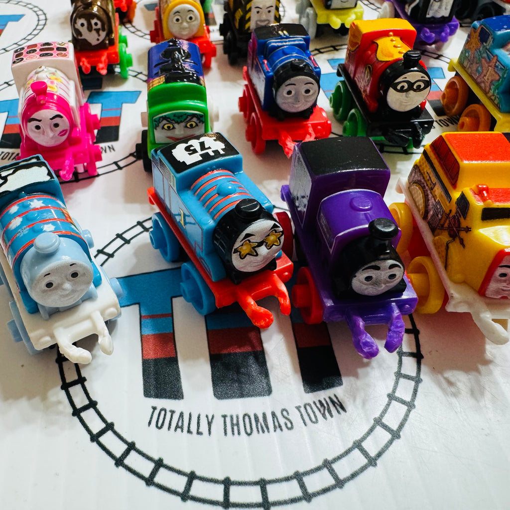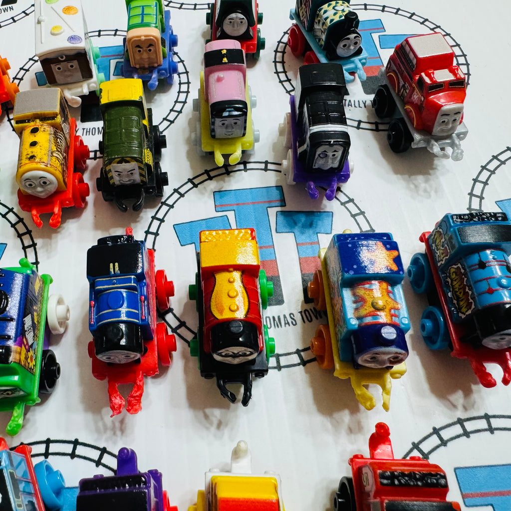 Used Minis as shown Damaged Couplings/Hooks.  Please note minis are individual trains and are not compatible with wooden or Trackmaster track