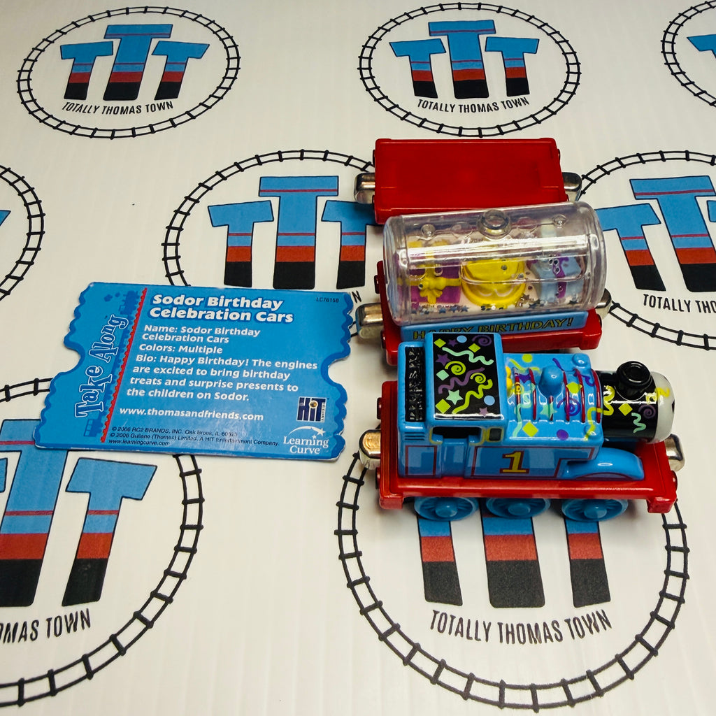 Thomas & Sodor Birthday Celebration Cars (2002) Low Water Very Good Condition with Character Card Used - Take Along