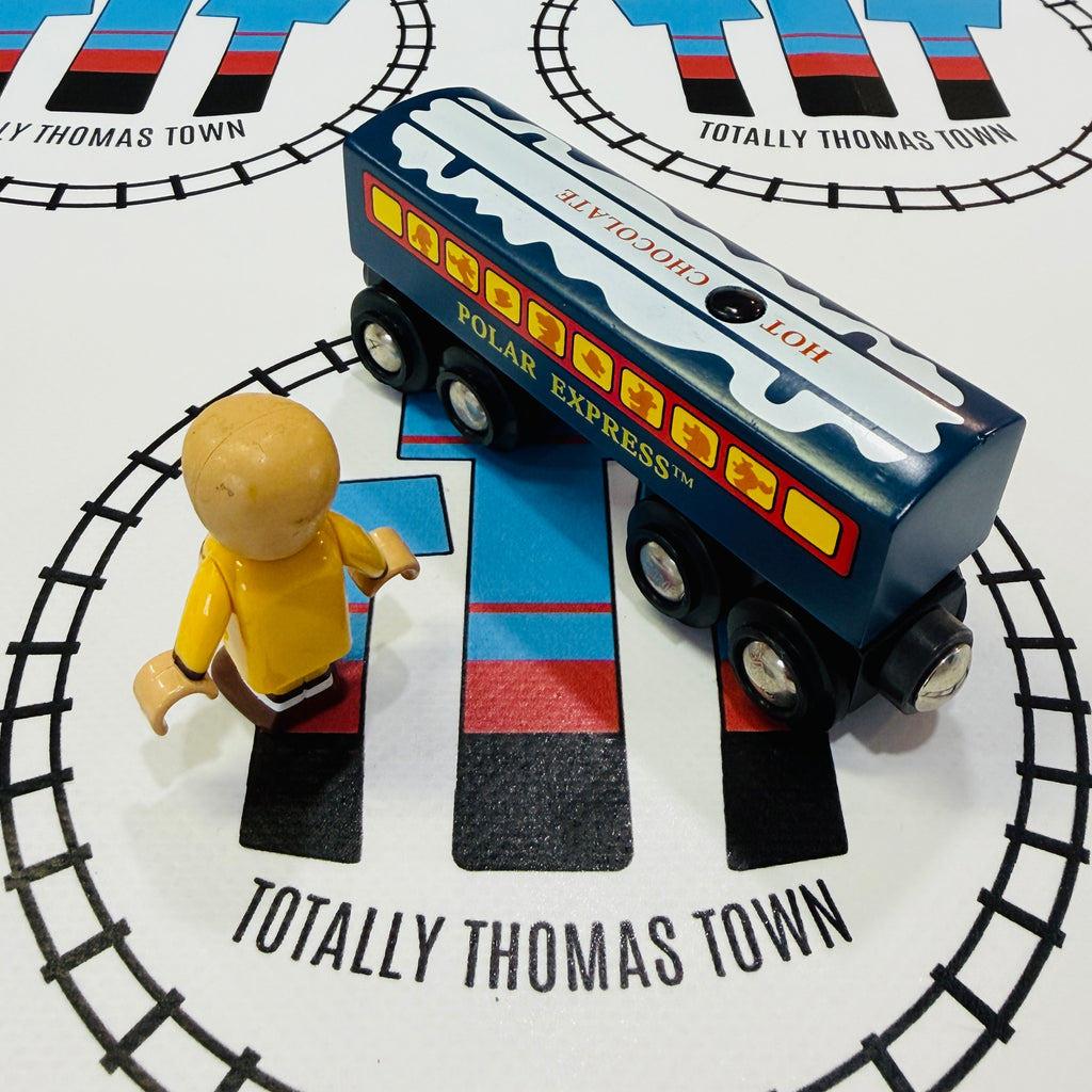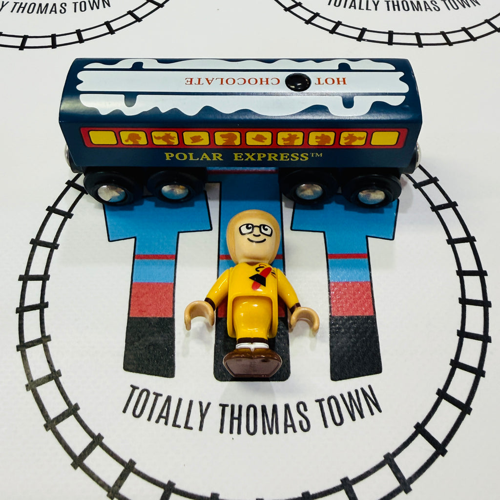 BRIO 32505 Polar Express Hot Chocolate Car with Sound & Know-It-All Boy RARE Wooden - Used