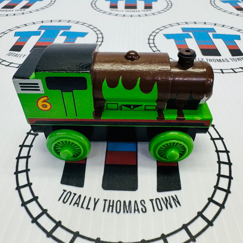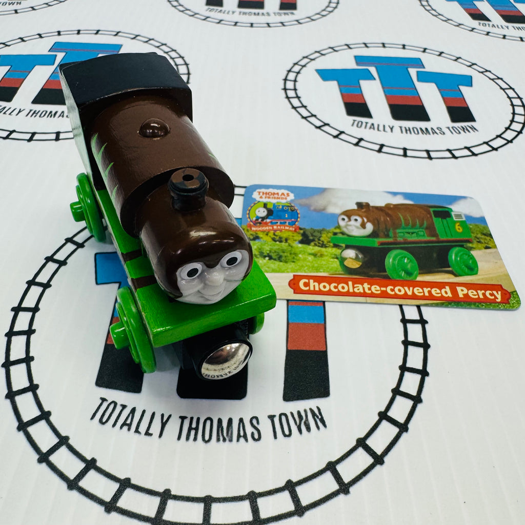 Percy in Chocolate with Card (Learning Curve 2003) Very Good Condition Marked on Bottom Wooden - Used