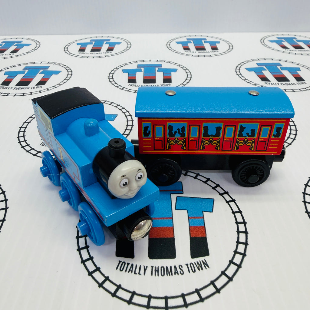 Thomas and Limited Edition Passenger Car - Thomas 10 Years in America (Learning Curve 1999) RARE Wooden - Used