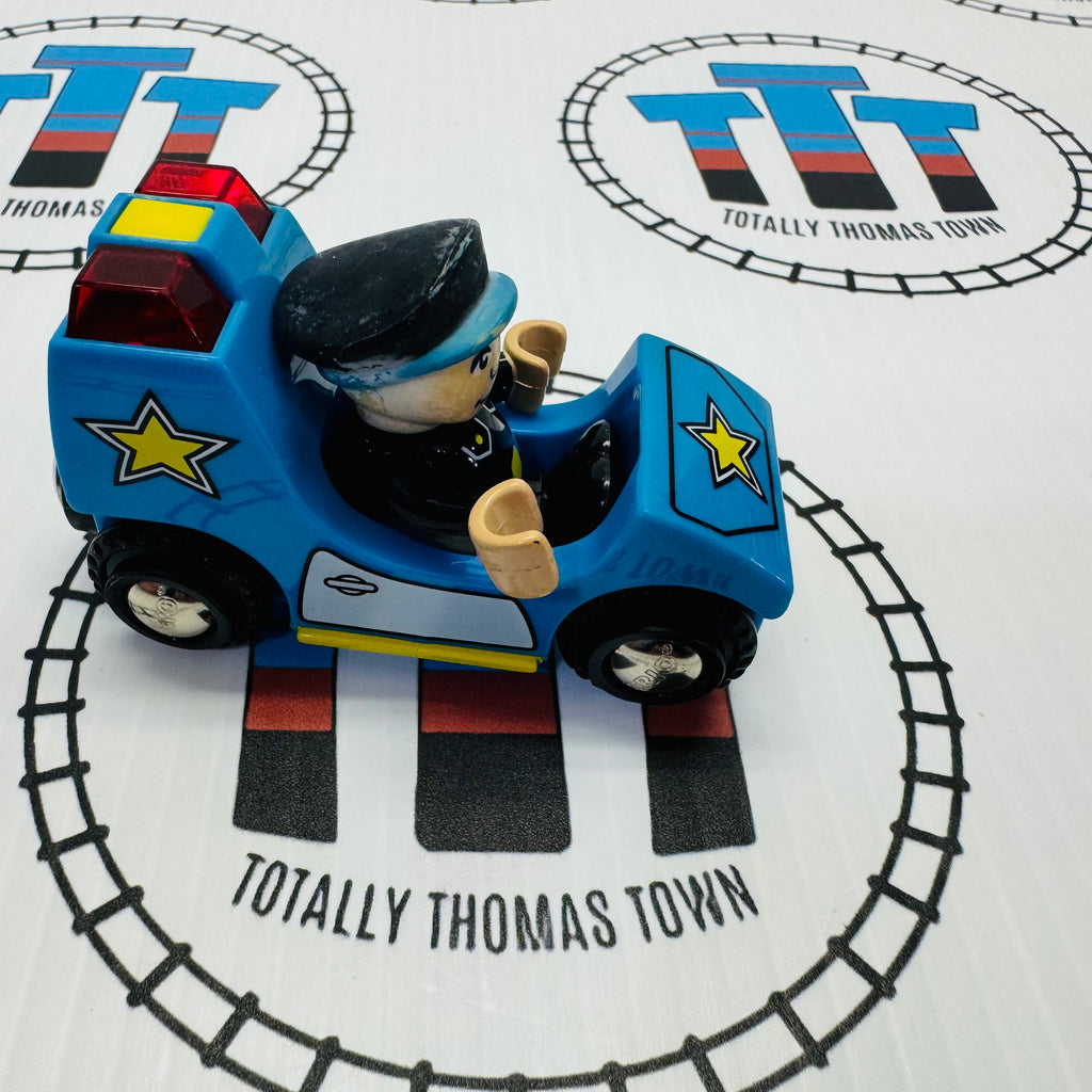 BRIO Police Car #2 with Lights & Sound (Discoloured) with Figure (Brittle Fair Condition) 33540 Wooden - Used