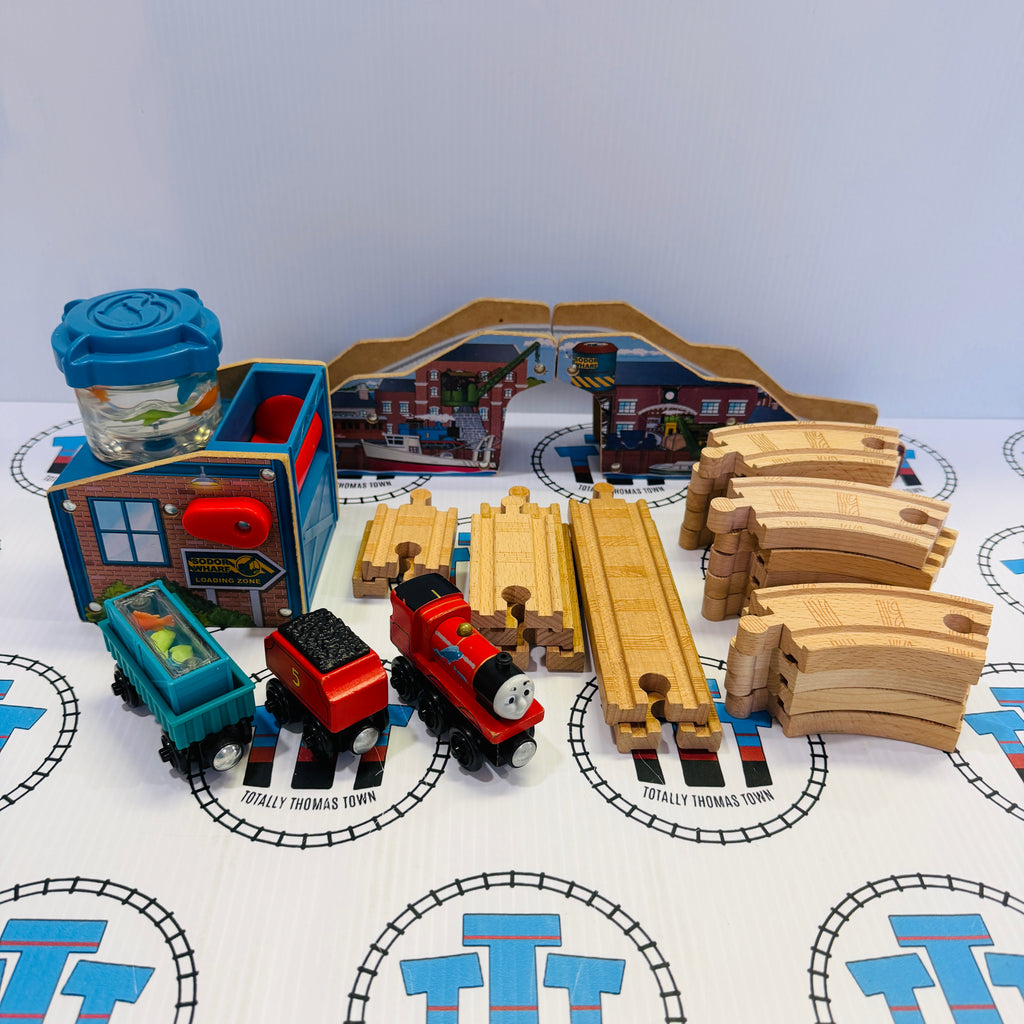James' Fishy Delivery Set Missing Sign/Cargo Bin (Track No Road) Thomas Brand Wooden - Used